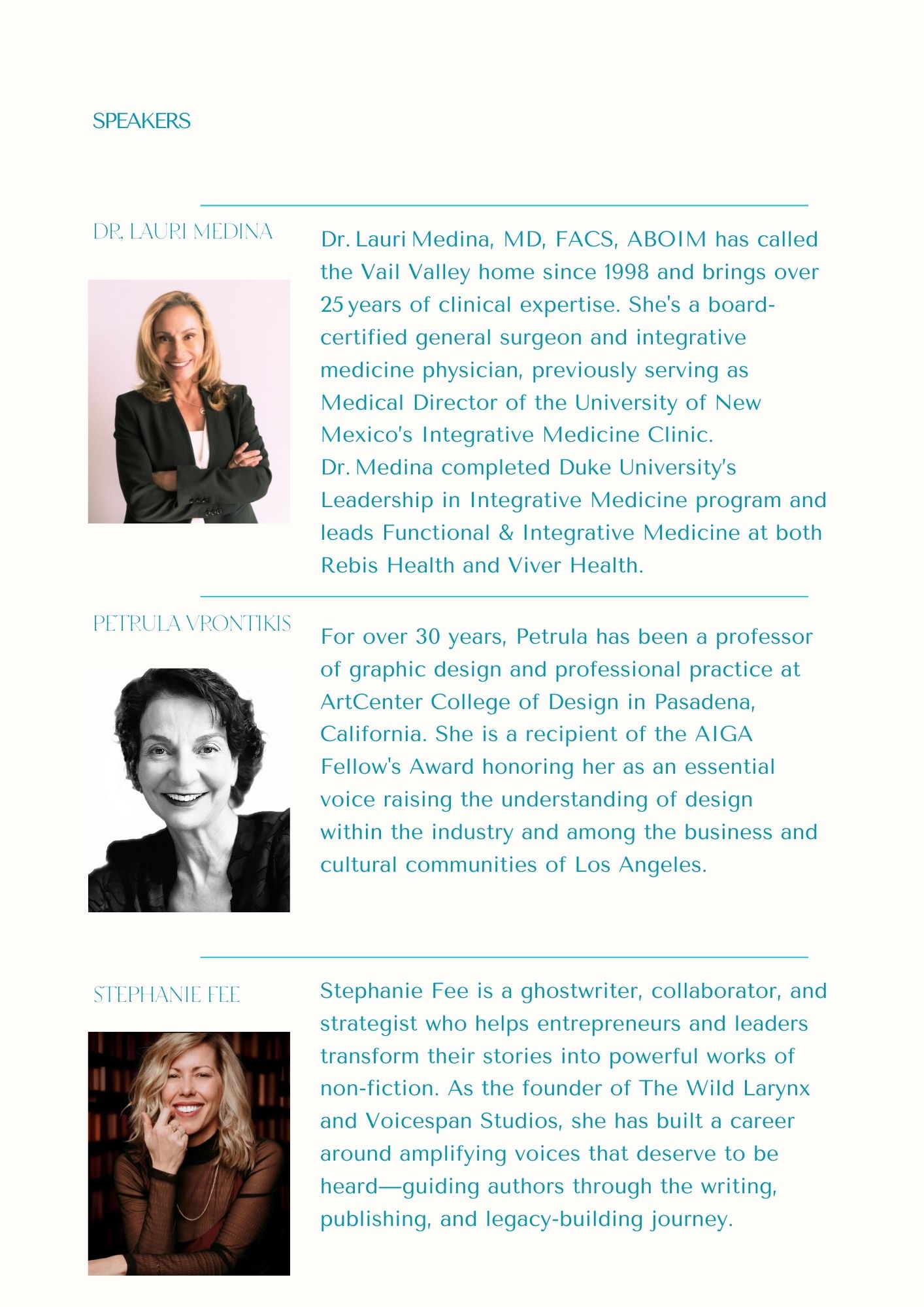 An Immersive Wellness Retreat for Women Reimagining What’s Possible at Every Age Vail, Colorado | October 1–5