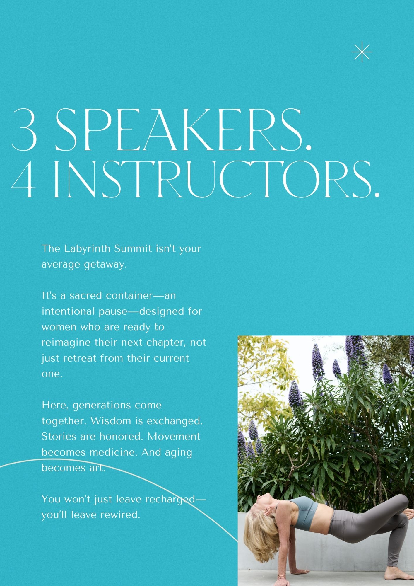 The Labyrinth Summit is a transformative four-day experience in Colorado that marks the start of a lifelong connection—a retreat where you join a bold community of women committed to aging with agency, softness, power, and purpose.