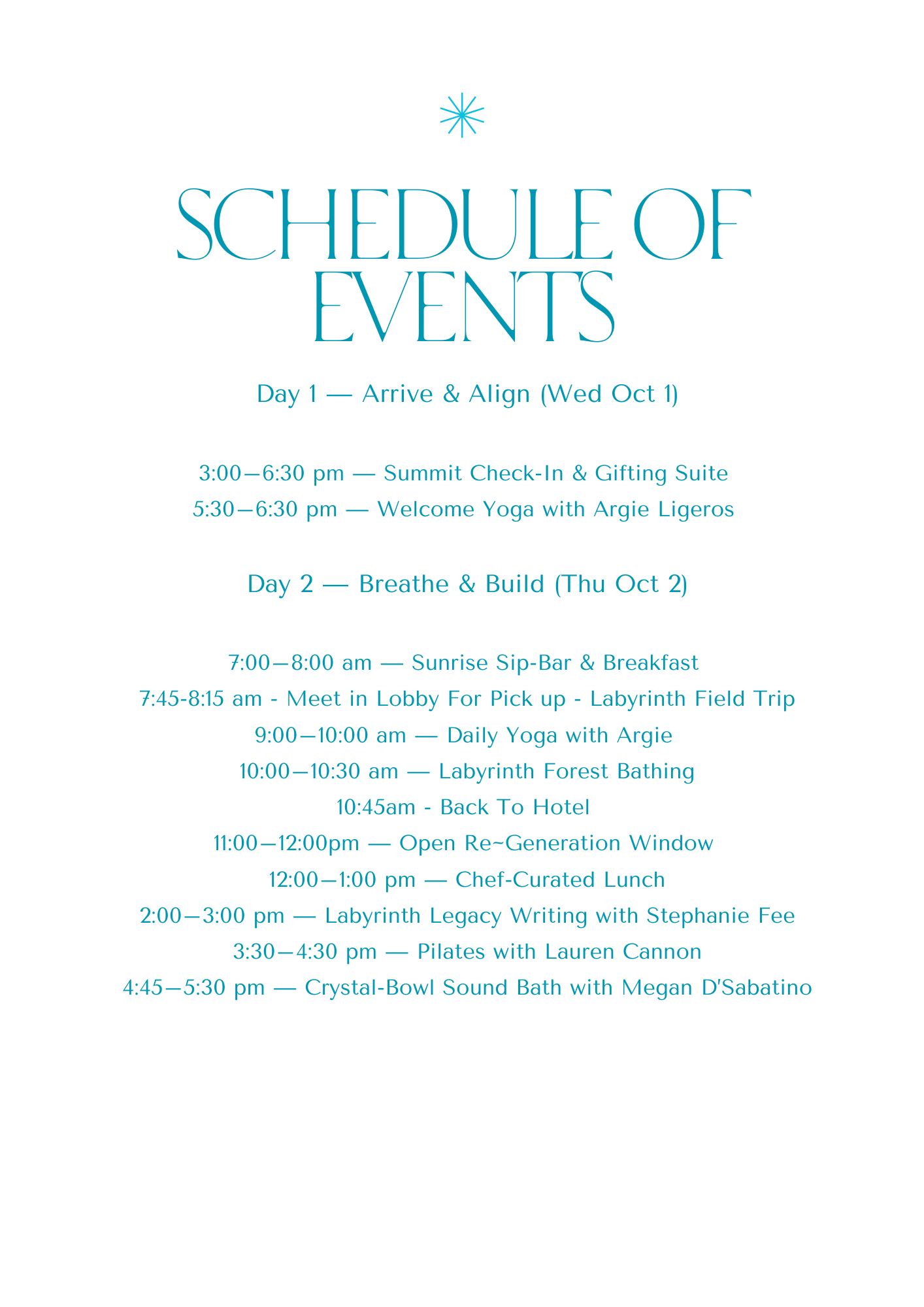 The Labyrinth Summit is a transformative five-day experience in Colorado that marks the start of a lifelong connection—a retreat where you join a bold community of women committed to aging with agency, softness, power, and purpose.